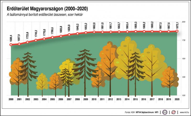 Magyarország területének 84 százalékán álltak fák az ember megjelenése előtt. Az erdősültség a XX. század elején 11,8 százalékos volt, most 21 százalékos, de az Agrárszektor szerint a hazai erdők csaknem fele ültetett, tájidegen fákból áll.