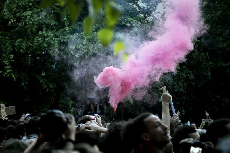 Előtte a rendőrök felszólították a demonstrálókat, hogy menjenek hátrébb a saját testi épségük érdekében. A történtek után a diákok jelentősen hátrébb kerültek a rendőrökhöz képest, a rendőrök három részre osztották a tüntetők csoportját. „Szégyelld magad!” – skandálják a tüntetők.
