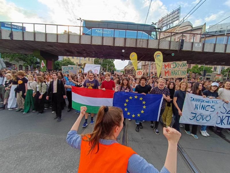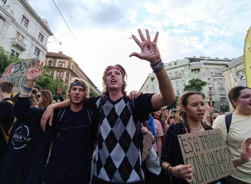 — skandálták a diákok a Vígszínház előtt elvonulva. Múlt héten a Sándor-palotában meghirdetett nyílt nap alkalmával személyesen is találkoztak a köztársasági elnökkel, ahol ugyancsak azt kérték tőle, vétózza meg a státusztörvényt, amikor az hozza kerül. Novák Katalin akkor azt mondta, komolytalan lenne, ha ezt csak így megígérné.