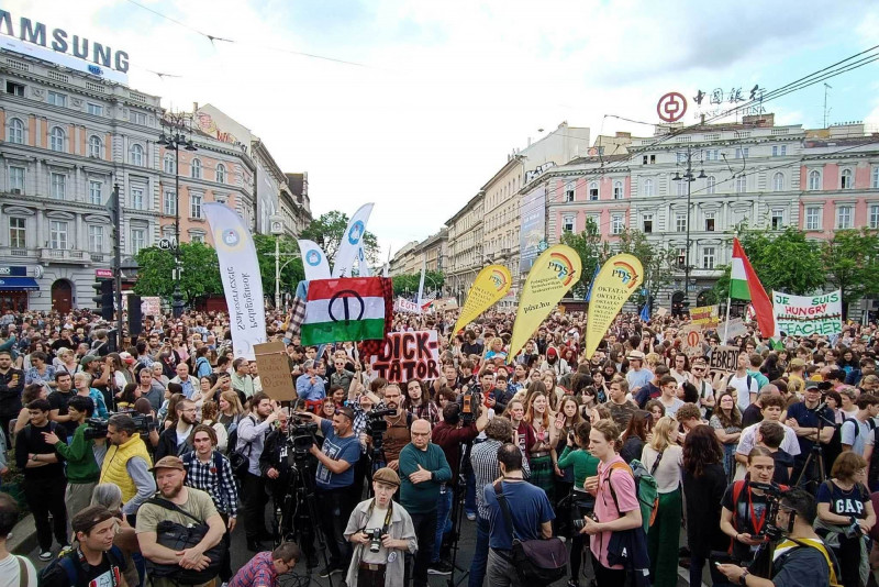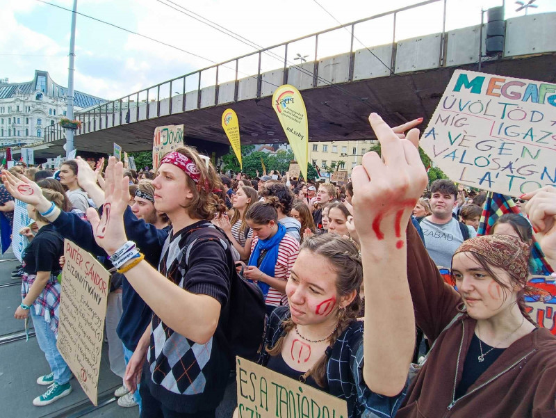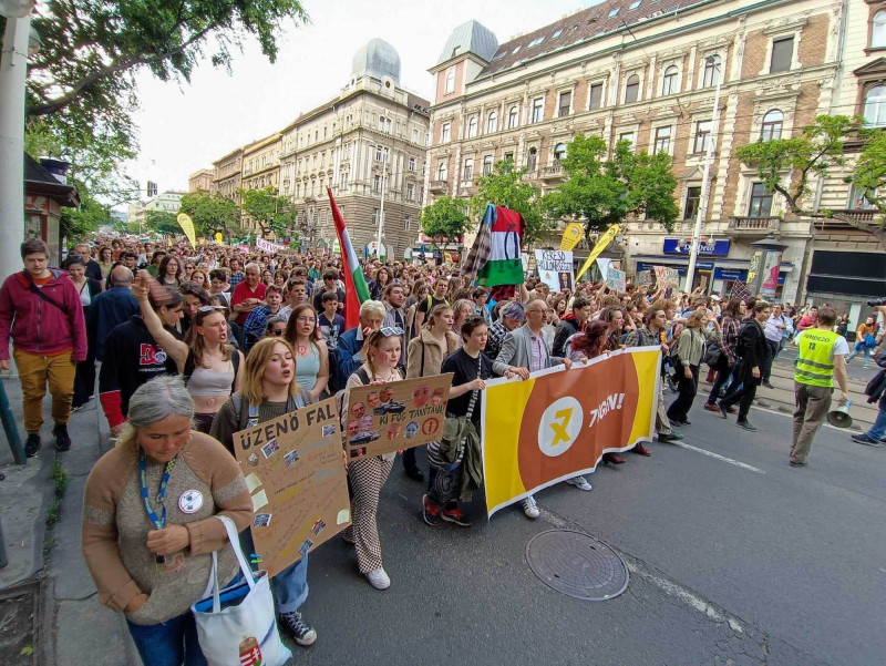 A mai demonstrációt az Egységes Diákfront szervezte. Legutóbb bő két héttel ezelőtt tüntettek Budapesten a diákok és civil szervezetek a pedagógusokat ellehetetlenítő státusztörvény ellen, jelezve, hogy a tiltakozást folytatják. Az akkori demonstrációnak az lett a vége, hogy a Karmelita-kolostornál könnygázzal fújták le az ott felállított kordont bonatni szándékozó diákokat a rendőrök, többeket, köztük Tompos Márton, a Momentum politikusát előállították.