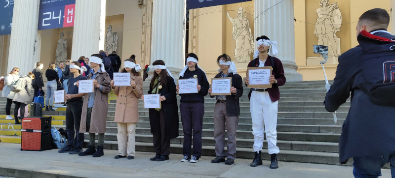 Vasárnap délelőtt az Egységes Diákfront 7 aktivistája kivonult a Magyar Nemzeti Múzeum lépcsőjéhez, hogy demonstratívan felhívják a figyelmet, a valódi gyermekvédelem a minőségi oktatással kezdődik,