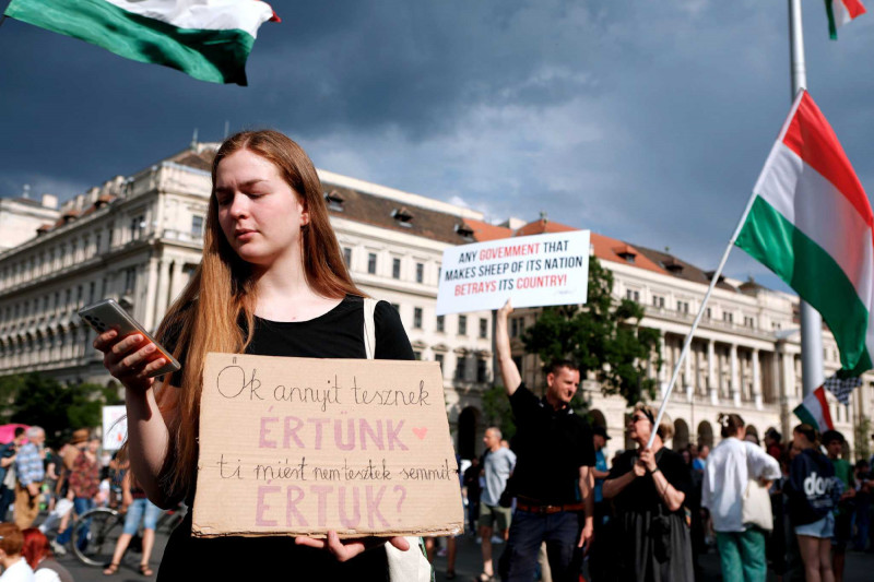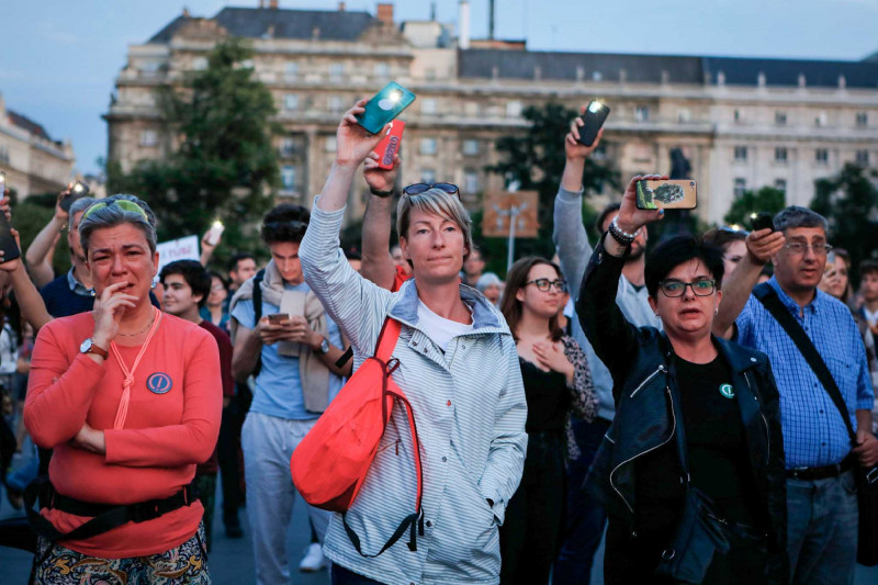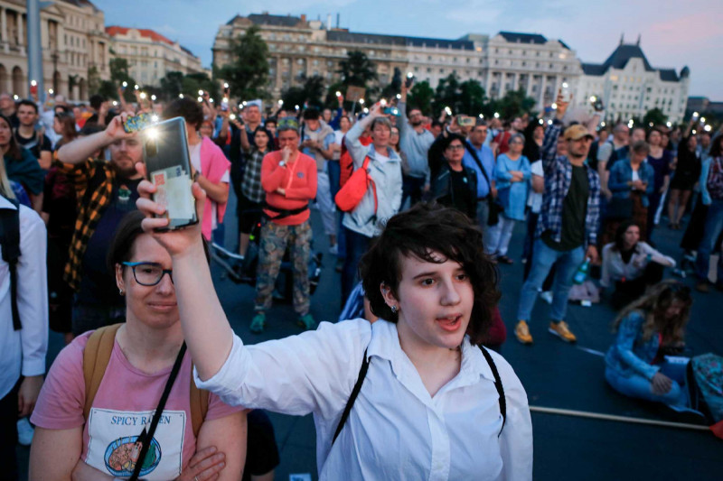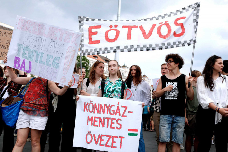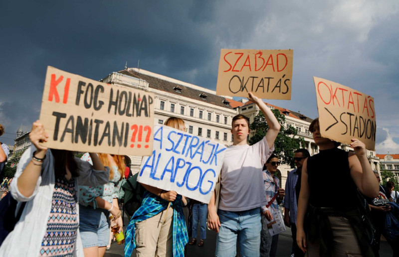 Több ezren – tanárok, diákok, idősek – tiltakoznak az Országház előtt a pedagógusokat teljesen kiszolgáltatottá tevő, ellehetetlenítő, ún. státusztörvény ellen, miközben a Házban a Fidesz azt próbálja beadni a jogszabálytervezet vitájában, hogy olyan nagyon nem is bántanák a tanárokat. A Kossuth térre az Egységes Diákmozgalom és a Tanítanék hirdetett tüntetést a státusztörvény általános vitájának péntek délutáni, késő délutáni időpontjára. A Telex tudósítása szerint a 17 órás kezdéskor még csak mintegy ezren voltak a téren, de rövid idő alatt több ezresre duzzadt a tömeg.