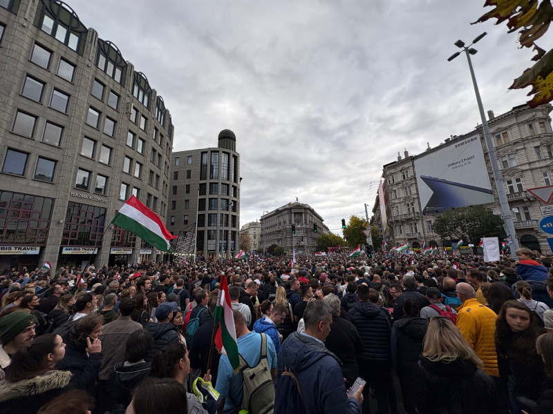 Ezen az október 23-i csütörtökön még az időjárás is azt akarta, hogy egészen jövő március 15-ig – ekkor gondolom, megint lesz majd egy-egy nagyobb dzsembori –, hogy Magyar Péter és Orbán Viktor is soha nem látott tömegről beszéljen az interneten,A Tisza rendezvényére látogattam ki, hiszen mégis csak érdekelt, hogyan áll össze közös masszává egy olyan tömeg, aminek az egyik része valószínűleg még tavaly is a DK-ra, a másik pedig mondjuk a Mi Hazánkra szavazott, és hogyan találnak egymásra azokkal az egykori fideszesekkel, akik minden mérés alapján most már tényleg megjelentek a Tisza Párt szavazói között. Megismerni szinte lehetetlen őket természetesen, hiszen a Tisza megjelenése egészen új jelenséget hozott a magyar tüntetéspiacra: ameddig korábban ránézésre megmondta az ember, kik szerveztek egy tüntetést (sok EU-s zászló, szórványos tömeg = ellenzék, sok magyar zászló, sok nyugdíjas és nagy tömeg = Fidesz), addig mostanra nagyjából ugyanúgy néz ki a két tábor azt a pár EU-zászlót leszámítva.