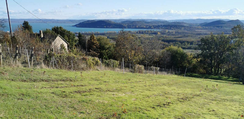 A Szálka-dűlőn álló 3,3 ezer négyeztméteres telek pompás panorámát enged a tóra és a Tihanyi-félsziget nyúlványára. A rendőrség érdeklődése körébe került ingatlan egy művelési ágból kivont zártkerti terület, amelyen szőlőültetvény volt szerszámoskamrával. Ezeket felszámolva borturizmust kiszolgáló szálláshely és hozzá kapcsolódó külső terek építésébe fogtak azzal az eredeti megkötéssel, hogy a terület 80 százalékán gyümölcsöst kell telepíteni. Az új épületet 100 négyeztméteresre méretezték, amihez gépkocsibeálló, burkolt területek csatlakoznak összesen 298 négyzetméteren. Az engedélyeztetéshez talajvédelmi, humuszgazdálkodási és ültetvénytelepítési tervet kellett készteni a Veszprém megyei kormányhivatal számára.
