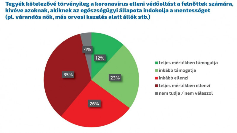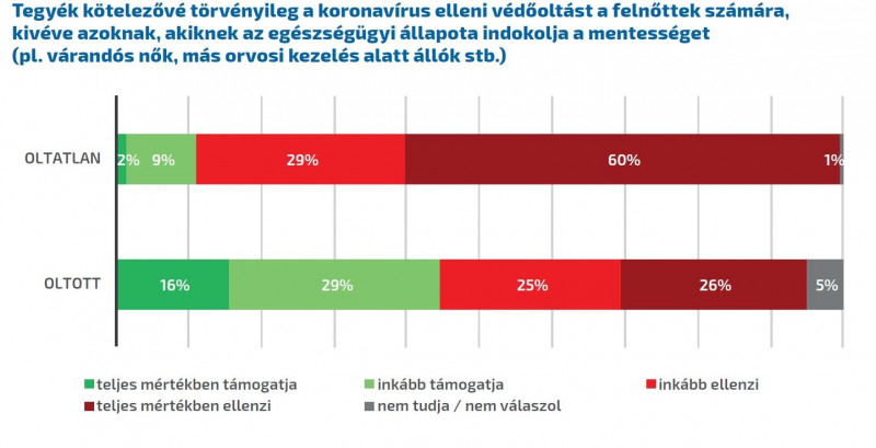A kötelező oltás megítélésében nem meglepő módon az oltottak és az oltatlanok között mutatkozik a legélesebb különbség, de még az oltottak körében is többen ellenzik ezt a lépést, mint ahányan támogatják.