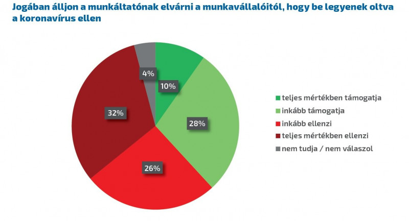 A szeptemberi felmérésben megkérdezettek többsége elutasította azt az azóta megvalósult kormányzati intézkedést is, ami a munkáltatóknak ad jogot arra, hogy megköveteljék alkalmazottaiktól az oltás felvételét. Mindössze 38 százalék támogatta ezt, míg 58 százalék ellenezte.