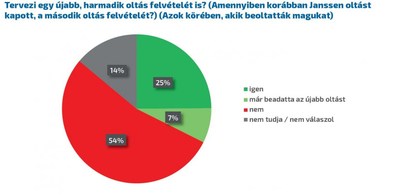 Nem túl biztatóak a kutatás adatai a harmadik oltásról sem. Azok közül, akik megkapták az első két dózist, szeptemberben csak 25 százalék mondta, hogy tervezi felvenni a harmadik oltást, míg 54 százalék nem tervezi ezt (7 százalék már megkapta a harmadik oltást, 14 százalék nem döntött a kérdésben).