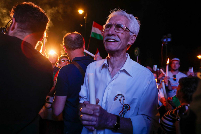 Arról is beszélt, bárki bármit mond, egy hónap alatt létrejött egy csodálatos közösség Magyarországon, az egész Kárpát-medencében. Több ezer önkéntes segíti őket, de biztos abban, hogy a választáshoz közeledve egyre többen lesznek. De ne féljenek, tette hozzá, ez a munka kifizetődő lesz, majd Petőfivel folytatta: alul a víznek árja, de azért a víz az úr. A vitáról szólva azt mondta, egészen elképesztő volt Deutsch Tamást nézni közben. Sajnálja a fideszes szavazókat, mert Deutschnál csak alkalmasabb vezetőt választhattak volna erre a vitára. Végül arra kérte hallgatóságát, fogják meg egymás kezét, közben a tömeg a Kossuth-nótát kezdte énekelni.
