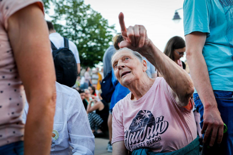 A Telex helyszíni tudósítója szerint körülbelül 200-300 szimpatizáns várta Dobrevet. A vezetésével a Várkert Bazár elé vonultak a DK-sok, ahol már Magyar Péter hívei is gyülekeztek. A szervezők először azt akarták, hogy teljesen kikerüljék a tiszásokat, de végül szabályosan átvágtak a tömegen. Füttyögés, fújolás, de köszöngetés és kölcsönös taps is volt, amikor Dobrev Klára és a DK szimpatizánsai átvonultak a Magyar Péter hívei között.