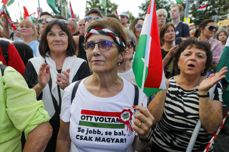 Magyar Péter megköszönte „a magyar rendőrök munkáját”, majd úgy folytatta, hogy „velünk vannak a magyar rendőrök”, utána hosszasan sorolta, hogy még kik, a DK híveinek pedig ezután azt ajánlotta, hogy menjenek át a Lendvay utcába, a Fidesz székházához, mert szerinte eltévesztették a címet.