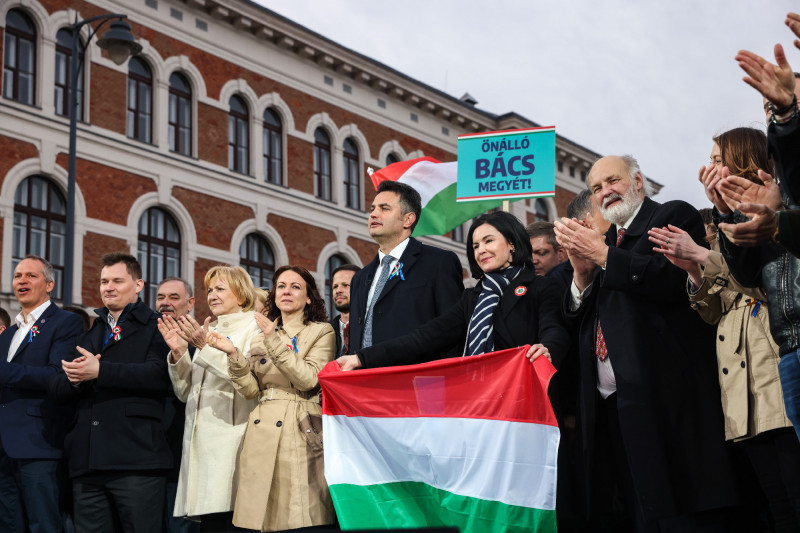A közös miniszterelnök-jelölt úgy fogalmazott, elfogadhatatlan, hogy egy ember akarja megmondani, kit és miért szeretünk, hogy ki mit gondoljon. Elfogadhatatlan, hogy ma Magyarország sakktábláján az egyik féltől mindent elvesznek, hogy a szabályokat az egyik fél írja, mégis mindenki azok szerint kénytelen játszani. "Önként mentünk vissza a történelem rossz oldalára. De húsz nap múlva választások lesznek" - tette hozzá.