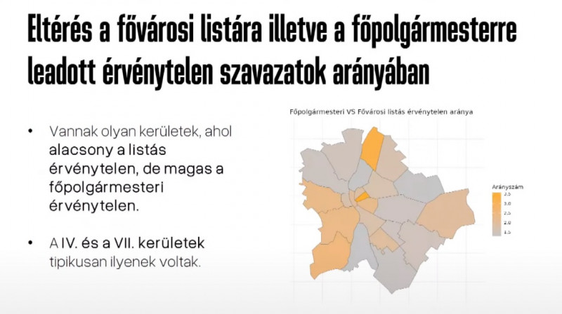 Vitézy Dávid adatai szerint 78 százalékkal több az érvénytelen szavazó, mint a fővárosi listán, a IV. és a VII. kerületben pedig kiemelkedően sokan szavaztak érvénytelenül. Azt is megvizsgálták, hogy van-e összefüggés a Tisza Párt támogatottsága és az érvénytelen szavazatok között – hiszen Magyar Péter a saját példájával arra biztatott, hogy szavazzanak érvénytelenül, ő maga fel sem vette a megfelelő szavazólapot –, de szerintük nincsen: „Nem Magyar Péter szimpatizánsai miatt lett sok érvénytelen szavazat” – mondta az LMP jelöltje. Ezt bizonyítja, hogy azokban a szavazókörökben, ahol Tiszás jelöltek indultak és szerepeltek jól, nem nagyobb az érvénytelen szavazatok aránya.