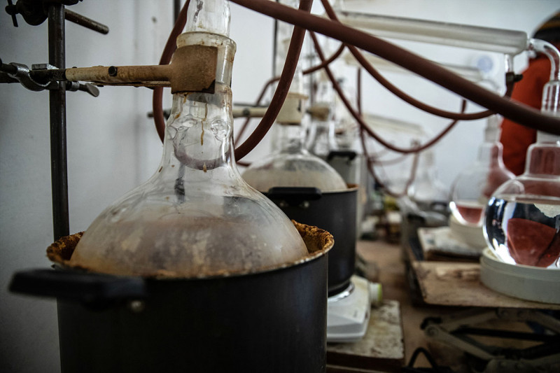 A zsámbéki családi házban működő laboratóriumban komplett lepárló gyártósort, különböző vegyészeti labor- és hűtőberendezéseket, valamint összesen 7,5 tonna olyan vegyi anyagot találtak, amelyből gyógyszert lehetett előállítani.