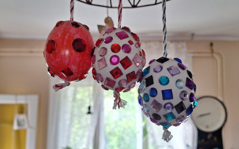 A legsikerültebb tojások akkor készültek, amikor semmi sem jött össze. Amikor nem fogta meg a festék. Amikor összekarcoltam, amikor nem akartam még egy harisnyát és még egy tálat feláldozni egy újabb tojás megfestése érdekében, amit egy hét múlva ki fogok dobni. Pár éve úgy esett, hogy volt otthon egy elkeseredett gyerek, és egy csomó kis csillogó kavics, mozaik még valami do it yourself őrületből, és akadt hozzá ragasztó is. Fogtuk a tojást, kapott valami alapszínt, mindegy, mi módon, talán egy elrontott festéssel. Majd ezeket a kis köveket és mozaikokat szépen felragasztgattuk a tojásra. És lett belőle húsvéti diszkógömb. Mivel kifújt tojással szórakoztunk, ezért el lehetett tenni, és minden évben fel lehet lógatni a lámpára.