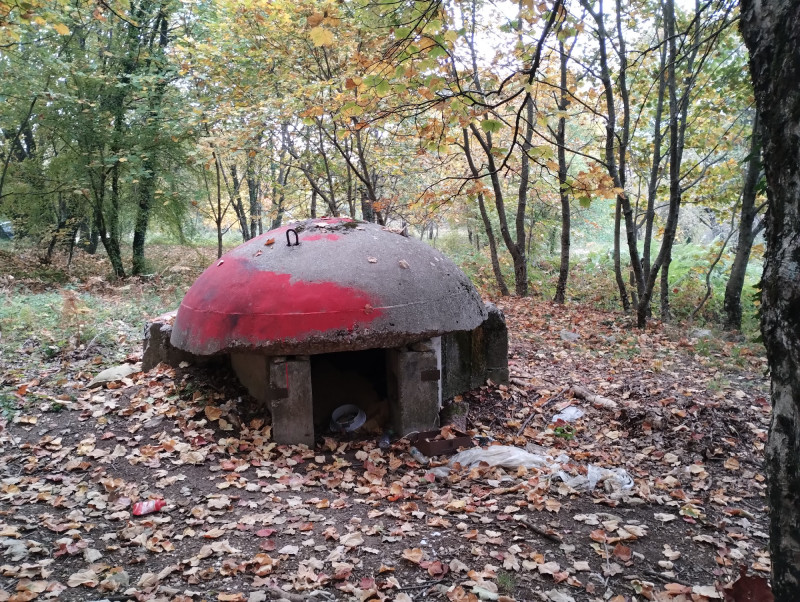 Egykori bunker egy Tirana környéki erdőben. A bunkereket Albánia kommunista diktátora, Enver Hodzsa parancsára építették 1967 és 1986 között. Az volt az elképzelés, hogy ezeknek a vasbeton lövészépítményeknek a segítségével védik meg az országot az ellenségtől. Egyes becslések szerint 750 ezer volt belőlük Albánia-szerte. Miután jóformán lehetetlenség elbontani őket, bunkereket ma is látni utak mentén, földeken, hegyek oldalában, sőt, lakóházak kertjében.