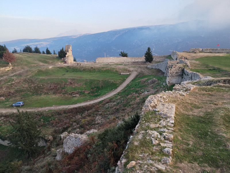 1445 méter magasan, a Gjipalit-hegy tetején. A Llogarai-hágóhoz vezető út a hegy és a szemközti hegyvonulat között húzódik. Baloldalt a 2018 méteres Qorres nevű csúcs.