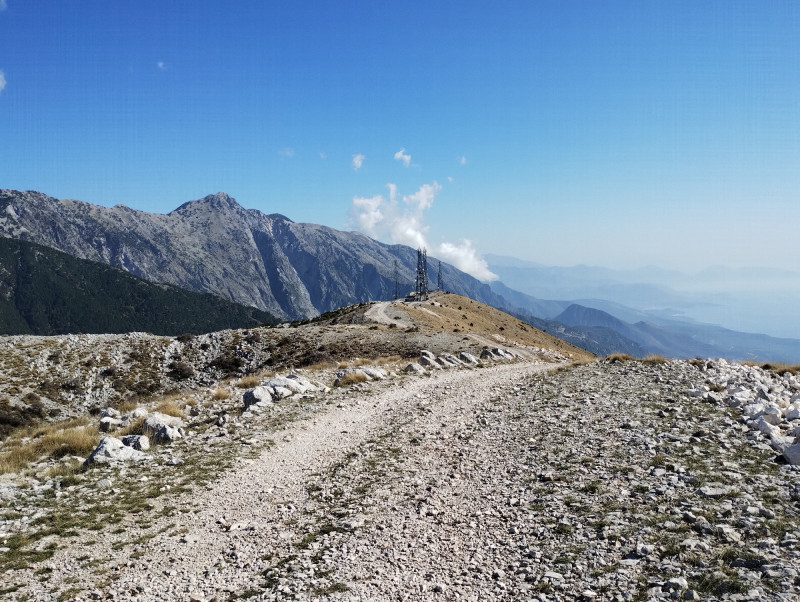 Adótornyok a Llogarai-hágó fölött. A kép jobb szélén a Jón-tenger kéklik, a hágótól és a csúcsokról Korfu is látható.