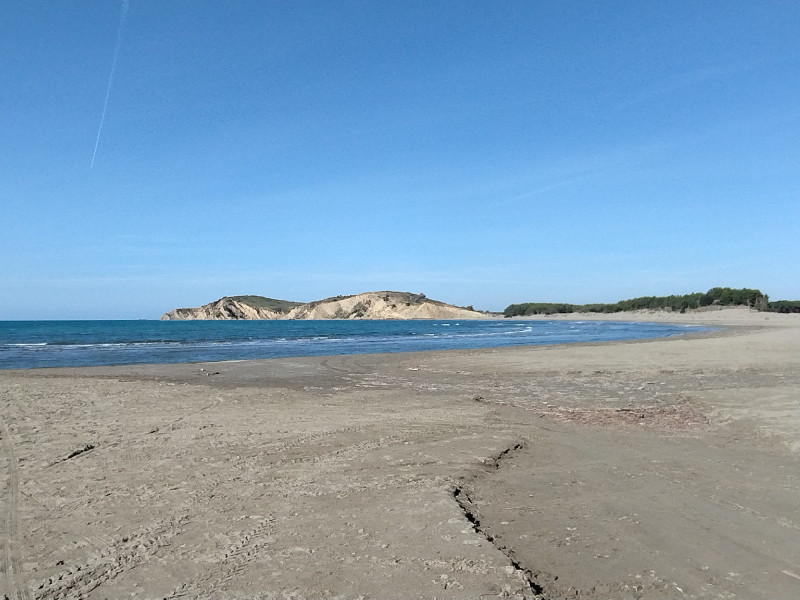 Egészen más a táj Vlorától északra. Ez az érintetlen tengerpart a Dalan Beach. Megközelítése elég nehézkes: a legközelebbi településtől ugyan csak három kilométerre van, de az odáig vezető murvás, gidres-gödrös úton alacsony alvázú személyautóval csupán lépésben lehet haladni.