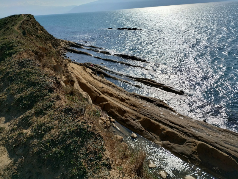 Ez az a pont, ahol az embert elfogja az érzés, hogy hetekig el tudna itt lenni. Kilátás az Adriai-tengerre a Dalan Beach melletti egyik magaslatról. A háttérben középen a Vlorával szemközti sziget, az egykor tengeralattjáró bázisként működő Sazan körvonalai.