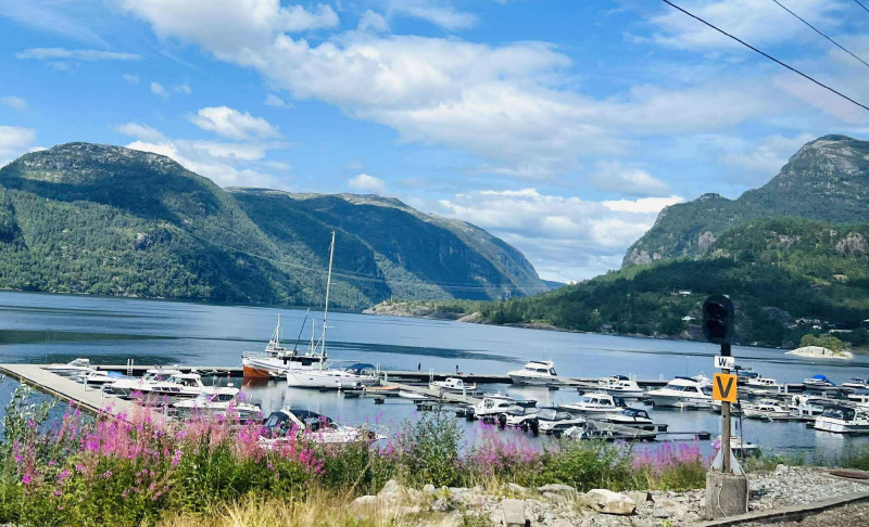 Az Osló és Bergen közötti vasutat Európa és a világ egyik legszebbjének tartják. A közel 500 kilométeres út legmagasabb pontja Finsénél van, 1222 méterrel a tenger szintje felett. Bergenben autót béreltünk – nem meglepő módon, csak elektromos kocsi jött szóba. A kezdeti nehézségek után gyorsan megszoktuk, és közel ezer kilométer pakoltunk bele, miközben három feltöltés után belejöttünk az újfajta „tankolás” rejtelmeibe. (Annyi Teslát sehol nem látni, mint itt, mellette a Volvók, a Volkswagenek, a BMW-k és a Fordok is elektromos hajtóerővel működnek; a benzines vagy dízel autó olyan ritka, mint a fehér holló. A töltőállomásokból pedig annyi van, hogy mindig találni üres helyet. Gyorstöltésssel 20-30 perc alatt megvan az autó, és mehetünk tovább.) Bergenből 240 kilométeres út vezetett az északkeletre fekvő Lærdalba, ahol faházat béreltünk. Nemhogy kátyút, de a legkisebb repedést sem láttunk az úton, pedig nagyon kerestünk.