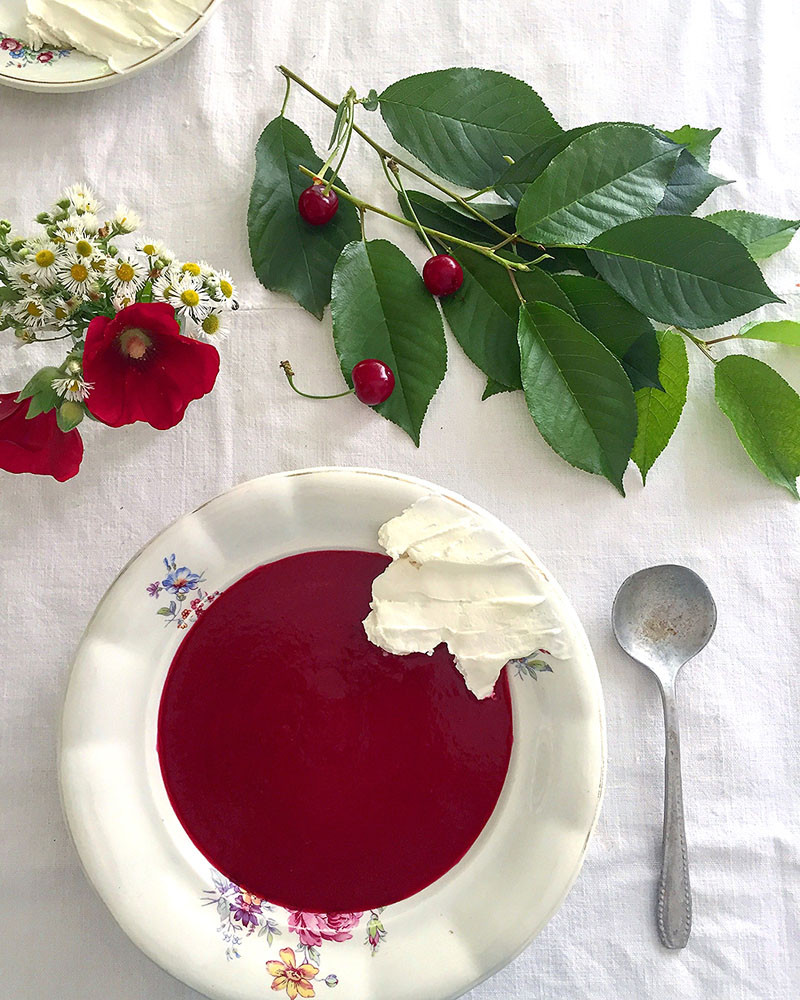 A harminchektáros ültetvényről az érett meggy azonnal feldolgozásra megy, részben Debrecenbe, részben Karcagra, ahol befőttet és fagyasztott meggyet készítenek belőle. Szerencsére civilként is simán be lehet térni, és akár egy kilót is vehet az ember. Háromféle meggyet termesztenek, az „érdi meggy” érik elsőként, és toronymagasan az a legfinomabb is. Aki pedig már kóstolt olyan meggyet, amit tökéletes állapotában szedtek le a fáról, az el tudja képzelni, hogy milyen ízű az ebből készített, jéghideg kánikulaleves. Gazpachónak nem merem nevezni, de azért nem is egy hagyományos gyümölcsleves.