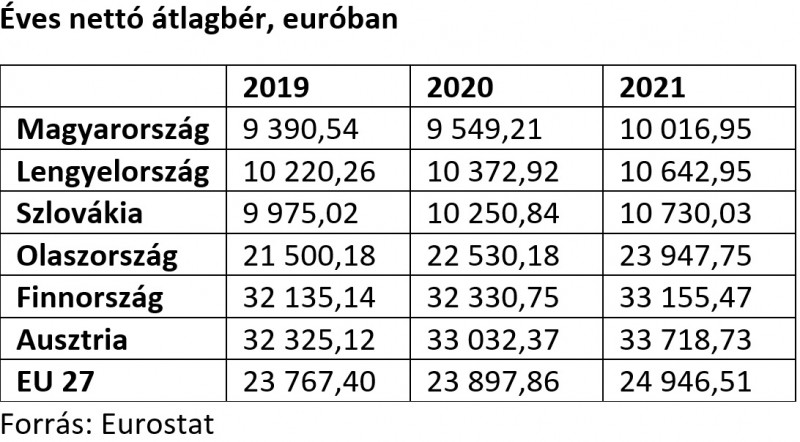 Ez önmagában is rendkívül elkeserítő, hiszen Finnország a világ egyik legdrágább országa, a sima élelmiszeralapanyagokat ennek ellenére ezer forinttal olcsóbban be tudtuk volna szerezni. Még kellemetlenebb az összegzés, ha megnézzük a jövedelmeket is (az Egyesült Királyságot a Brexit óta nem mérik): 2019-ben 35 ezer euró fölött volt a nettó átlagbér. Az Eurostat adatai szerint egy egyedülálló, gyermektelen átlagbére Magyarországon volt a legalacsonyabb a vizsgált országokban. Miközben 2021-ben Ausztriában háromszor magasabb volt az átlagbér, mint Magyarországon, aközben a tészta és a sütemény előállítása kevesebbe kerül.
