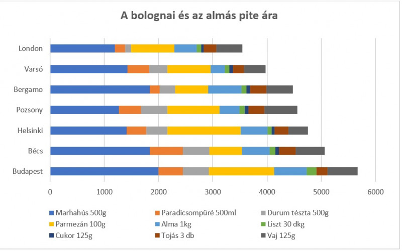 Összességében Budapesten kell a legtöbbet fizetni a bolognai spagetti, almás pite menüért.
