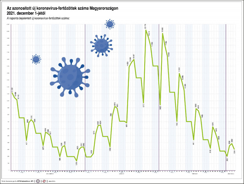 Magyarországon az utóbbi egy napban 75-en haltak meg a koronavírus okozta betegségben, 3064 új fertőzöttet regisztráltak. A beoltottak száma 6 396 404-re nőtt, közülük 6 173 237-en a második, 3 816 971-en pedig már a megerősítő, harmadik oltást is megkapták.