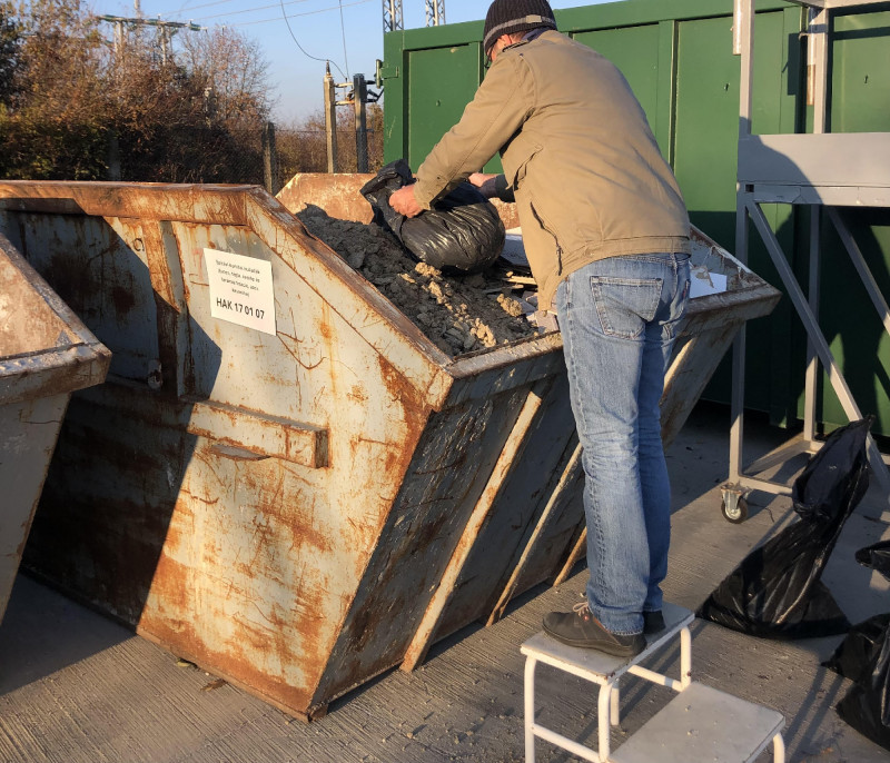 A férfi itt is arra készült, mint az önkormányzat tulajdonában lévő Veszprémi Közüzemi Szolgáltató Zrt. telepén, hogy a behajtás után gépkocsijával rááll egy nagy mérlegre (hídmérleg), mindenestül lemérik, majd a sitteszsákokba pakolt törmeléket az erre kijelölt placcon kiöntögeti, aztán kifele menet újra megmérik, és már intik is egymásnak a viszlátot. De már az első fázisnál kiderült, hogy mindez nem így van. Miután egy portának és irodának is tűnő épület előtt megállt, az illetékes alkalmazott közölte vele, pakolja át a zsákokat egy kicsi, alig egy négyzetméteres mérlegre. Kirakta a 20-25 kilót is nyomó zsákokat, remélve, hogy ezzel letudja a feladatot. Azaz mégsem rakott ki minden zsákot, mert amikor már csak néhány maradt a kocsisban, egy női hang szólt az őt szemmel tartó kollégájának: „Ennyi!” A kolléga rögvest továbbította is az üzenetet az ügyféllé átlényegült polgárnak: „Ennyi!” – szólt szenvtelen hangon, mutatóújját felemelve.