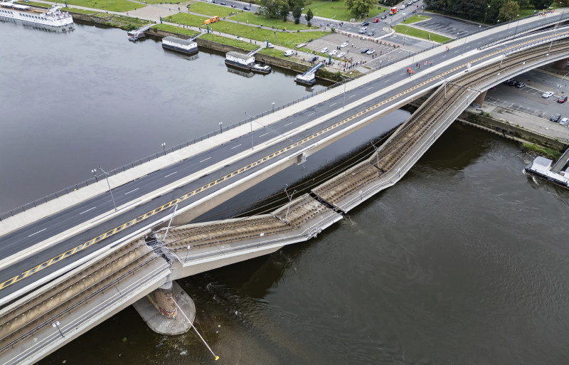 Szerdára virradó éjjel leszakadt a kelet-németországi Drezdában az Elbán átívelő Carola-híd egy része. Az MDR beszámolója szerint a híd villamosközlekedésre szolgáló része hajnali 3 után nem sokkal szakadt le, előtte 18 perccel még áthaladt rajta egy villamos.