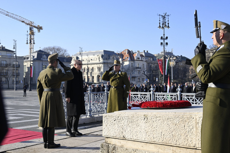 A Telex tudósítása szerint az elnököt Novák Katalin köztársasági elnök várta, majd a díszegység eljátszotta neki a magyar himnuszt. Erdoğant ezután több magyar kormányképviselő fogadta, mások mellett Csák János, Bóka János, Orbán Balázs, Szalay-Bobrovniczky Kristóf és Pintér Sándor. A török elnök ezután magyarul köszönt a katonáknak, majd megkoszorúzta az I. világháborús Hősök emlékkövét.