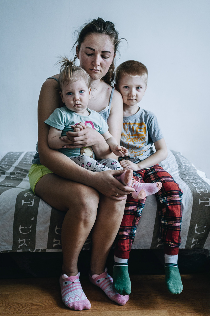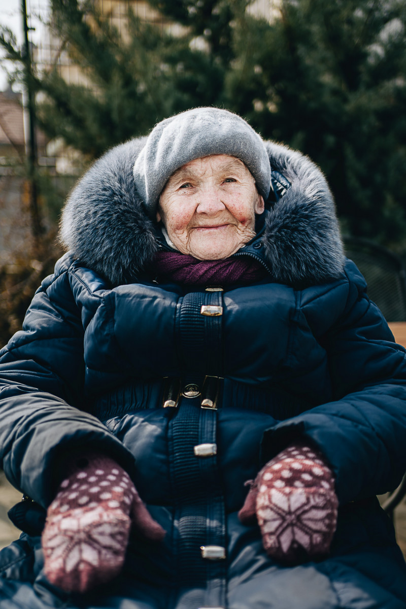Jana két gyermekével, Zlatával és Danyával érkezett Magyarországra. Húga Budapestről segített nekik. Férje kint maradt harcolni, az ő nagymamája látszódik a fotón, ahogy romos otthonuk előtt áll Kirovohradban. Egy menekültszállón laknak a Pest megyei Bagon száz hasonló történetű sorstársukkal. „Itt minden anyukának ugyanaz a traumája, segítjük egymást, összetartunk. Egy nagy családként élünk, mindenünket megosztjuk, próbáljuk lefoglalni magunkat, szórakoztatjuk egymást, együtt főzünk, takarítunk.”