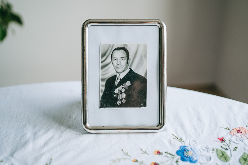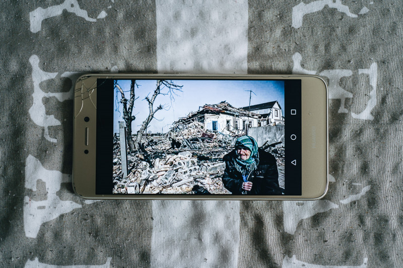 Lesja családja Dnyipropetrovszk megyéből menekült el. Az utazás alatt szét kellett válniuk (páran Görögországon keresztül érkeztek), végül Budapesten találkoztak újra mind a heten, most Szlovákiában élnek. A képen szereplő sógora és két nagyfia önként vonult be a seregbe. Nem mondhatják meg, hogy hol harcolnak, csak annyit hogy az ott lévő városokat már porig rombolták az oroszok. Március 18-án hosszabbították meg egy hónappal a hadiállapotot Ukrajnában; akkor még reménykedtek, hogy nem fog tovább tartani a háború, és haza tudnak menni.