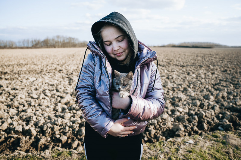 Jelena nővérével együtt menekült el Harkivból a háború második napján. Szüleik otthon maradtak, hogy megvédjék a városukat és az idősebb rokonaiknak gondját viseljék. Jelena mindenképp magával szerette volna hozni kiscicáját, aki nagyon meg volt rettenve a hangos robbanások miatt.