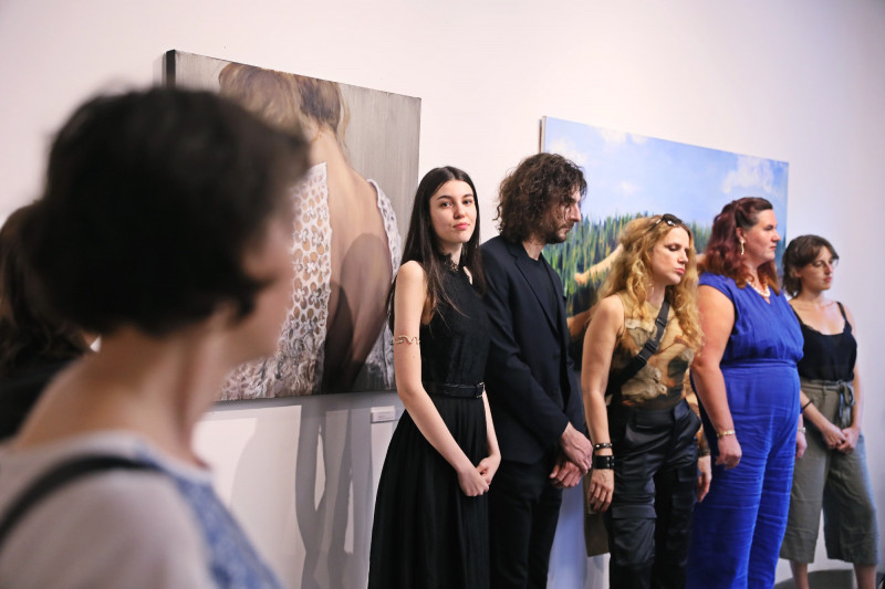 És szépen megérkezünk a teremtés és az osztódás idejéből a túl sok lehetőség idejébe, ami alighanem a jelenünk. A Juhász Villő képén álló alak sem kevésbé magányos, mint az almáért egyedül nyúló Éva, vagy a sebhelyét feltáró névtelen nő. A tükörben megjelenő, testét fényképezővel megörökítő nőalakról készült olajkép mint amolyan önreprezentációs tükörlabirintus lebeg előttünk. Ő volna nárcisztikus énünk végtelenül hétköznapi megtestesülése. A túl sok ruha, a végtelen számú jelmez, az ellenállhatatlan erővel ránk telepedő önreprezentációs kényszer rétegei mögött elveszni látszó saját én. A testem én vagyok, de csak egy testnek lenni elviselhetetlen volna, hát ezért én vagyok az összes anyag és forma, az összes felület is, amivel ezt a testet elrejtem, vagy amiből ezt a testet időnként kibontani próbálom.