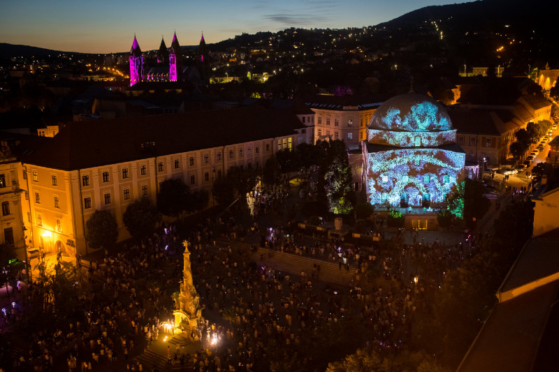A fesztivál fő attrakciójának számító Zsolnay Light Art Video Mapping Verseny keretében öt alkotás látható, amelyek háromdimenziós, hanggal kísért, fényből szőtt animációk, kifejezetten a Székesegyház homlokzatára komponálva. A verseny témája ezúttal a bűvös kocka.