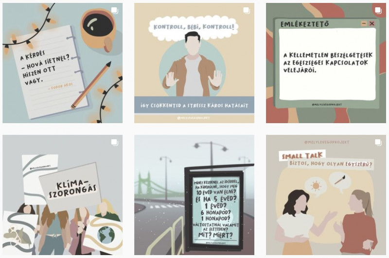 JB: Alapvetően úgy igyekszünk összeállítani a posztokat, hogy érthető legyen mindenki számára, de valóban a közösségimédia-platformmal együtt jár, hogy egy fiatalabb közösséget tudunk megtalálni. Induláskor az volt a célunk, hogy a depressziót, szorongást, pánikzavarokat helyezzük fókuszba, mert ezek a leggyakoribb mentális zavarok, ráadásul a karanténhelyzet során felmerült, hogy ezek még inkább előtérbe fognak kerülni. Időközben kezdtünk el aztán a modern jelenségekről is beszélni. Sokszor a szakirodalomban találunk egy-egy releváns jelenségre, vagy a követők felől érkeznek kérések, kérdések.
