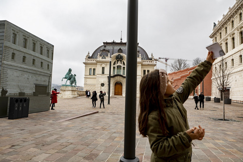 Hamar körvonalazódtak tehát az orbáni emlékezetpolitika számára fontos közterek: a Parlament környéke és a Budavári Palota mellett elsősorban a Szent György tér és a Ludovika. Nem csak régi szobrok mai másolatai jelentek meg, de itt kaptak helyet az új történelmi, emlékezetpolitikai hangsúlyok: Orbán politikusi mintaképei, Tisza István és Bethlen István emlékműveinek avatásán maga a miniszterelnök is részt vett. E terek – amelyekről el kell tűnniük a múzeumoknak, hogy helyet adjanak a politikai reprezentációnak – mintha már nem is a városhoz tartoznának; szimbolikusan vagy akár jogilag is úgy metsződtek ki a fővárosból, mint az áthelyezendő múzeumok új gyűjtőhelye, a Városliget, vagy a Nemzeti Színház gondolatától is „megtisztított” Erzsébet tér (amelyet a 2016-os Eb idején a futballfelvonulások középpontjává tettek). A prioritást élvező szimbolikus tereket pedig újraírt régi építményekkel kezdték el díszíteni: a Várban régi köntösbe bújtatott masszív betonépületekkel klónozzák a már egykor is csak a kreált dicső múlt kulisszáiként felépített házakat. (Ha már Mussolini párhuzama felmerült: a Szent György tér most még félkész épületeinek betonszkeletonjai mintha egy De Chirico-festmény hátterét idéznék.)