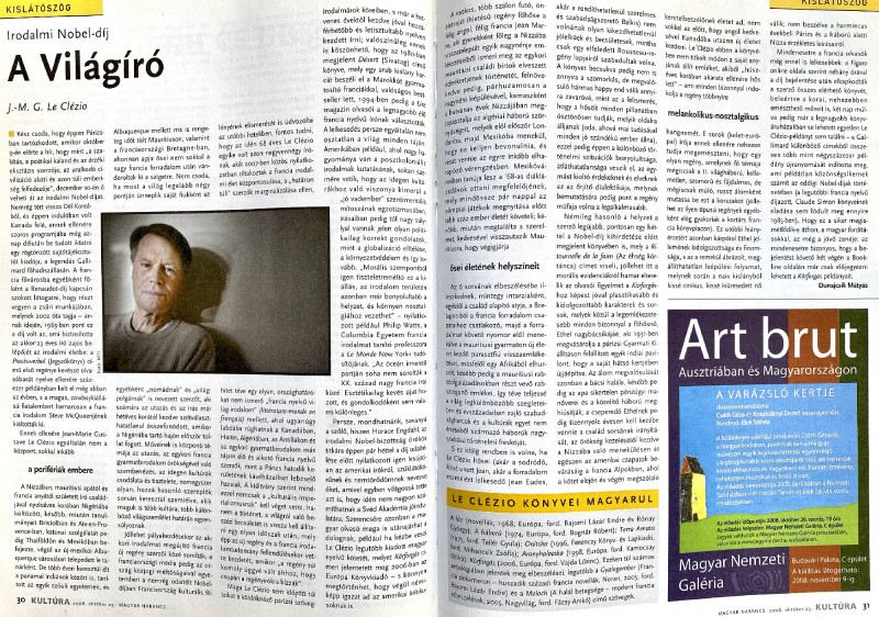 Kész csoda, hogy éppen Párizsban tartózkodott, amikor október 9-én elérte a hír, hogy mint "a szakítás, a poétikai kaland és az érzéki eksztázis szerzője, az uralkodó civilizáció alatti és azon túli emberiség felfedezője", december 10-én ő veheti át az irodalmi Nobel-díjat. Nemrég tért vissza Dél-Koreából, és éppen indulóban volt Kanada felé, ennek ellenére szoros programjába még aznap délután be tudott iktatni egy rögtönzött sajtótájékoztatót kiadója, a legendás Gallimard főhadiszállásán. A francia fővárosba egyébként főként a Renaudot-díj kapcsán szokott látogatni, hogy részt vegyen a zsűri munkájában, melynek 2002 óta tagja - annak idején, 1963-ban pont ez a díj volt az, ami biztosította az akkor 23 éves író zajos belépőjét az irodalmi életbe: a Procés-verbal (Jegyzőkönyv) című első regénye kevéssé olvasóbarát nyelve ellenére százezer példányban kelt el még abban az évben, s a magas, cowboykiállású fiatalembert hamarosan a francia irodalom Steve McQueenjének kiáltották ki.