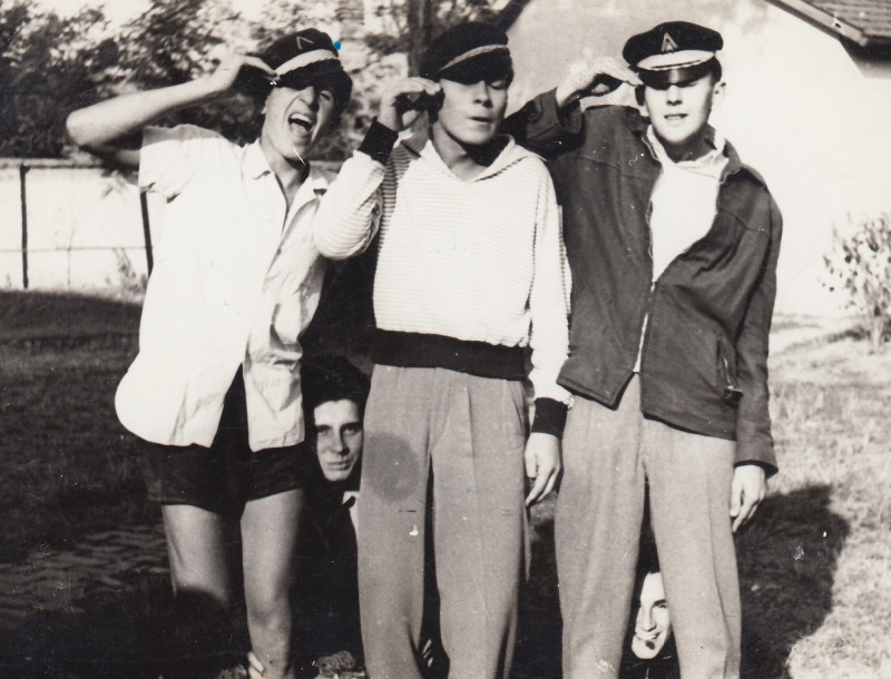 Az 1955 és 1959 között a kollégiumban élt diákok közül áll Savanya Ferenc, Peszleg Sándor, Egri Béla, guggol: Sipos Antal, Nagy István.