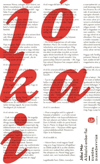 A kőszívű ember fiai felnőttkori élmény. Nagyapám második felesége a szembetegsége miatt már prizmával sem tudott olvasni, ezért nekem adta az Akadémiai Kiadó sorozatában megjelent Jókai-összest. Este hoztam el a könyveket ládában, belelapoztam az elsőbe, és másfél évig Jókait olvastam. Belépés a barlangba, amelyről nem lehet tudni, milyen mély, milyen hosszú – így kell elképzelni ezt a kalandot és a híres szürreális realizmust. Jókai mint túravezető előremegy a sötétségben, belobbantja, megemeli a gázlámpát, megmutat minden részletet, ijesztő árnyékot, olyan szeretettel, mintha mindez az övé volna. És tényleg, ő teremtette. „A teknönc még él, ha az agyvelejét kiveszik; hát egy leányszív még annál is szívósabb?” – olvassuk egy fontos pillanatban. Maga a könyv is ilyen. A Várkonyi-film a legidősebb fiú helyett kivégzett legkisebbiket gyászoló anya sírásával ér véget – a könyv nem, „minden későbbnél van még később”. (Bakos András)