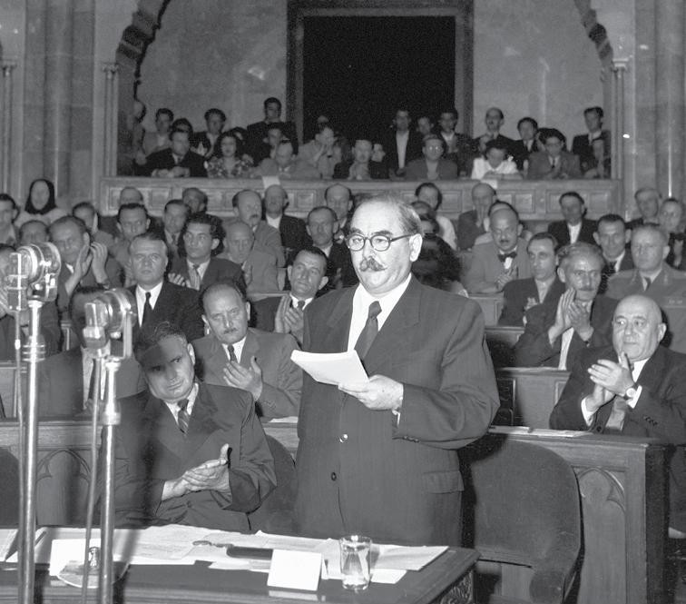 SZÁ: Nagy Imre politikai sorsa is Malenkovéhoz kapcsolódott. Amikor a párt első titkárának, Hruscsovnak 1955-ben sikerül megbuktatnia Malenkovot, Rákosi ezt azonnal a maga javára próbálta fordítani és kipasszírozta a hatalomból Nagy Imrét. De Hruscsov nem volt Rákosi, Malenkov pedig Nagy Imre. Malenkov bukása azt jelentette, hogy a szovjet vezetésben megszűnt a „kollektív vezetésnek” becézett duumvirátus – a kormány és a párt hatalmi kettőse. Magyarországon azonban a magát újra nyeregben érző, a sztálini rendszert saját érdekében restaurálni próbáló Rákosi miatt nem szűnhetett meg a kettős hatalom, csak láthatatlanná vált, személyi jelleget öltött és a két hatalom malomköve között lassan felőrlődött a rendszer. Ugyan Nagy Imre sem volt éppen Hruscsov favoritja, de Rákosit, ha teheti, már 1954-ben a kirgiz sztyeppékre száműzi. Remélte azonban, hogy Nagy Imrével egyelőre sakkban tarthatja Rákosit, és ha eljön a megfelelő pillanat egyszerre csapja agyon mindkettőjüket. A pillanat el is jött, a csapás az SZKP 1956-os XX. kongresszusa volt, és valóban mindkét magyar vezetőt agyon is csapta vele, csakhogy akkor már egész szovjet eredetű rendszerrel együtt. Ha valamilyen csodának, balesetnek, erélyesebb szovjet föllépésnek köszönhetően Rákosit 1953-ban vagy 1954-ben végleg kivonják a hatalmi játszmákból, akkor Magyarországon minden másképp ment volna tovább, nem jön létre kettős hatalom, kibontakozhat a Nagy Imre-féle „nemzeti kommunizmus” égisze alatt valamilyen féljugoszláv, féllengyel modell, és nincs 1956-os forradalom sem, ez biztos. Tudjuk, a „mi lett volna, ha” kérdése történelmietlen, de ha ezt – képletesen szólva − lakmuszpapírként használjuk, akkor néha mélyebben, finomabb vonalakkal rajzolja ki a történések szövevényét, mint a valóban megtörtént események.
