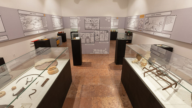 A mostani tárlat alcíme, az Ásótól a vitrinig utal arra is, hogy a nézők bepillantást nyerhetnek a feltárt anyag feldolgozási munkájába is. Pusztán a leleteket (mondjuk, egy míves ablakrácsot, két különböző anyagból készült őrlőkövet, fém, üveg és kerámia használati tárgyakat vagy állatcsontokat) látva ugyanis a szakembereknek is további vizsgálatokra és restaurátori munkákra van szükségük ahhoz, hogy megerősíteni vagy cáfolni tudják a kiinduló hipotéziseiket.