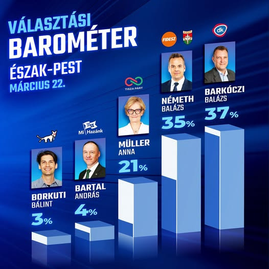 Mindeközben több forrásból is úgy értesültünk, hogy folyik egyfajta másodlagos kampány is a Fideszben: ha a párt sokszor telefonon érdeklődő aktivistái érzékelik, hogy sehogy sem lehet egy-egy szavazót a Fidesz felé fordítani, jobb híján a Demokratikus Koalíció felé terelgetik. Erre nemcsak a felhívottak beszámolói utalnak, hanem például a párt egyik budapesti jelöltje: az állami szennymédia Híradójából ejtőernyőzött Németh Balázs márcus 22-én azzal kampányolt, hogy ő maga csak a második helyen áll a kutatások szerint a 15. kerületben, az első helyre viszont nem a Tisza Párt jelöltjét, Müller Annát jósolja, hanem a 2022-ben az ellenzéki összefogás színeiben bejutott DK-s Barkóczi Balázst. Bár Németh a saját minimális hátrányának ledolgozására hívta fel a választókerület lakosságának figyelmét, nehéz nem arra vonatkozó üzenetként érelmezni a képet, mint hogy a DK-t tekintsék a potens ellenzéknek. A Fidesz ugyanis 2010 óta egyetlen alkalommal sem vallotta be sehol, hogy hátrányban lenne a jelöltje, ebben a kerületben pedig tényleg csak akkor lenne esélyük mandátumot szerezni, ha Barkóczi és Németh kioltaná egymást. Németh ráadásul még annak az elismerésébe is belement, hogy fideszesek szivárogtak át a Tiszához Budapesten: elődje 2022-ben ugyanis majdnem tíz százalékkal jobb eredményt ért el, mint amennyit a politikus magának jósolt.